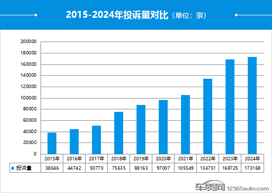 作為國內(nèi)領(lǐng)先的缺陷汽車產(chǎn)品信息收集平臺,車質(zhì)網(wǎng)2024年共受理消費(fèi)者針對汽車產(chǎn)品的有效投訴173,168宗(含第三方平臺和后裝輪胎投訴共199宗),較2023年上漲2.6%,同比增速放緩。其中,共涉及273個國內(nèi)汽車品牌的1,695款車型。隨著車企對車質(zhì)網(wǎng)發(fā)送的消費(fèi)者實(shí)名投訴問題重視程度日益提高,2024年共有149個品牌受理了車質(zhì)網(wǎng)發(fā)送的投訴,與2023年相比增加5個,其中投訴回復(fù)率達(dá)100%的品牌共84個,較2023年增加了13個。