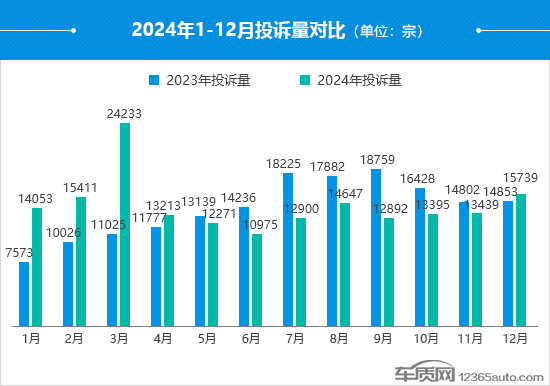 2024年3月份受多款車型爆發(fā)共性問題的影響,投訴量創(chuàng)紀(jì)錄地突破了2萬宗,較2023年同期漲幅超過1.1倍。整體來看,2024年共有5個月份的投訴量同比出現(xiàn)增長,其中,1月份和2月份的漲幅均超過了50%。相比之下,9月份的投訴量同比降幅最大,較2023年同期下降31.3%。