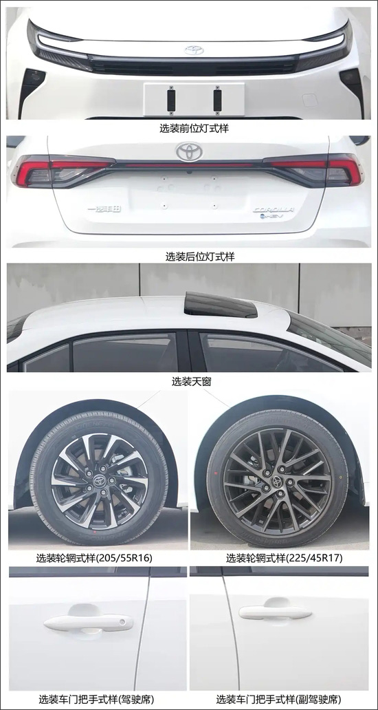 外觀方面,新車前臉采用豐田最新家族式設計,燈組造型煥然一新,并與下方進氣口形成一體化布局,整體更顯簡潔時尚,也帶有新能源車型的氣質。車尾與現(xiàn)款保持相似,依舊采用貫穿式尾燈設計,并在燈組上加入熏黑處理。車身尺寸方面,新車長寬高為4710mm*1780mm*1435mm,軸距2750mm,兩種動力版本在車身數(shù)據(jù)上保持一致。
