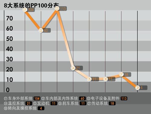·Öϵ½y(t¨¯ng)·½Ã棬éLØS«C±ªïwòv8‚€(g¨¨)ϵ½y(t¨¯ng)µÄPP100·Ö„ežé܇ÉíÍⲿ104¡¢Ü‡ƒÈ(n¨¨i)²¿¼°ƒÈ(n¨¨i)ï—60¡¢ëŠ×ÓÔO(sh¨¨)‚ä¼°¸½¼þ113¡¢œØ¿ØÏµ½y(t¨¯ng)21¡¢°l(f¨¡)„Ó™C(j¨©)11¡¢„x܇ϵ½y(t¨¯ng)11¡¢‚÷„Óϵ½y(t¨¯ng)18¡¢ÞD(zhu¨£n)Ïò¼°²Ù¿ØÏµ½y(t¨¯ng)4¡£Õûówí¿´£¬éLØS«C±ªïwòvÔÚ¶à‚€(g¨¨)ϵ½y(t¨¯ng)¾ùÓÐÖø²»åe(cu¨°)µÄÙ|(zh¨¬)Á¿±í¬F(xi¨¤n)£¬±ÈÈç¡°°l(f¨¡)„Ó™C(j¨©)¡±¡¢¡°„x܇ϵ½y(t¨¯ng)¡±¡¢¡°‚÷„Óϵ½y(t¨¯ng)¡±ÒÔ¼°¡°ÞD(zhu¨£n)Ïò¼°²Ù¿ØÏµ½y(t¨¯ng)¡±¡£²»ß^¡°Ü‡ÉíÍⲿ¡±¡¢¡°Ü‡ƒÈ(n¨¨i)²¿¼°ƒÈ(n¨¨i)ï—¡±ÒÔ¼°¡°ëŠ×ÓÔO(sh¨¨)‚ä¼°¸½¼þ¡±·½ÃæµÄ¸ß¹ÊÕÏ·´Ó³ÂÊÒ²Ö±½ÓÀµÍÁËéLØS«C±ªïwòvµÄÕûów±í¬F(xi¨¤n)¡£