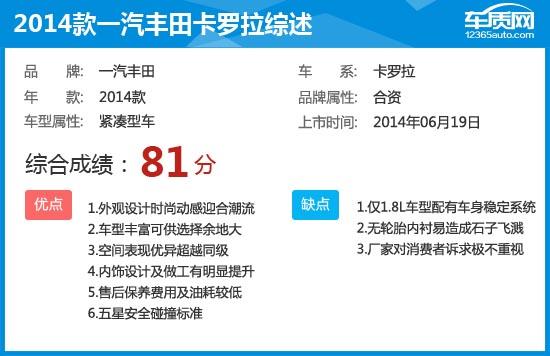 2014款一汽豐田卡羅拉完全評價(jià)報(bào)告