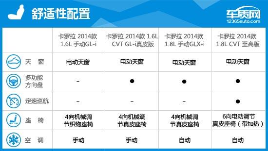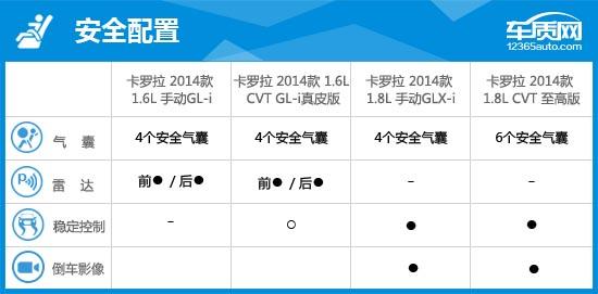 2014款一汽豐田卡羅拉共有多達(dá)12款車型在售,其中囊括了1.6L、1.8L兩種排量發(fā)動(dòng)機(jī)及手動(dòng)、CVT兩種形式的變速箱,可供消費(fèi)者挑選的范圍廣泛。不同于其它品牌車型,2014款卡羅拉推出的手動(dòng)擋車型多達(dá)5款,滿足追求駕駛的消費(fèi)者需求,同時(shí)也呼應(yīng)了卡羅拉運(yùn)動(dòng)的特點(diǎn)。但美中不足的是,車身動(dòng)態(tài)穩(wěn)定系統(tǒng)僅在1.8L車型才有所體現(xiàn),并且卡羅拉部分配置起點(diǎn)較高,這就造成了配置兩極分化嚴(yán)重的局面。