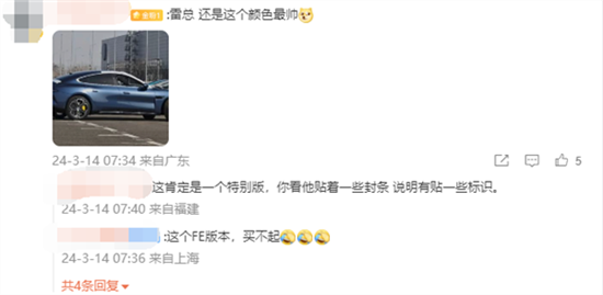 雷軍調(diào)研:小米SU7 3種顏色你會買哪個