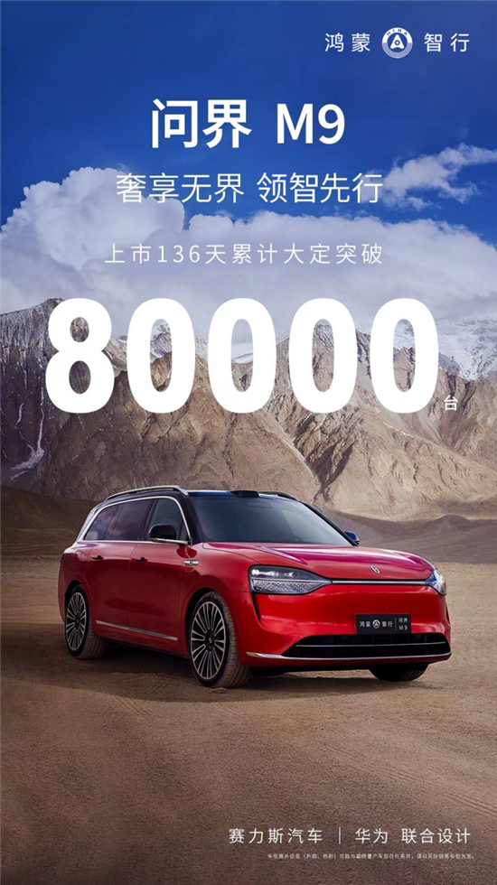 在競爭激烈的豪華車市場中,問界M9憑借出色的產品力、創(chuàng)新的技術配置和卓越的用戶體驗,贏得了消費者的廣泛認可。其上市僅136天,累計大定便突破8萬輛,不僅創(chuàng)下了中國豪華車的銷量新紀錄,更展示了問界品牌強大的市場影響力和品牌實力。