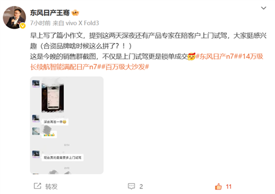 日產(chǎn)N7賣爆 銷售深夜帶客戶上門試駕簽單