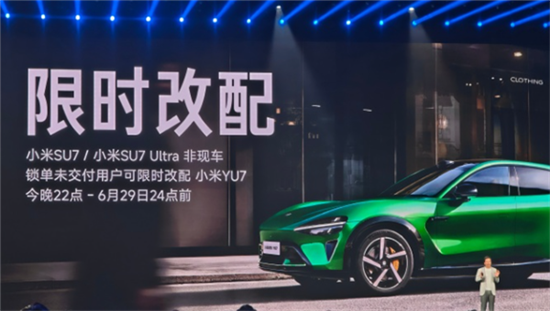 而在6月26日的小米人車家全生態(tài)發(fā)布會上,針對小米SU7、小米SU7 Ultra鎖單未交付用戶,雷軍表示:“6月26日22點至6月29日24點前可限時改配小米YU7!