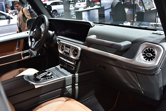 內(nèi)飾方面,新車整體設(shè)計與普通版保持一致,貫穿式的液晶顯示屏頗為亮眼,儀表盤和中控屏幕融為一體,極具科技感,同時,為了符合硬派越野車的定位保留了部分直線棱角,但卻依然無法掩蓋住由內(nèi)而外散發(fā)的豪華感。全新的多功能方向盤還加入了奔馳最新的雙拇指控制系統(tǒng)。此外,G級經(jīng)典的“三把鎖”依舊保留。