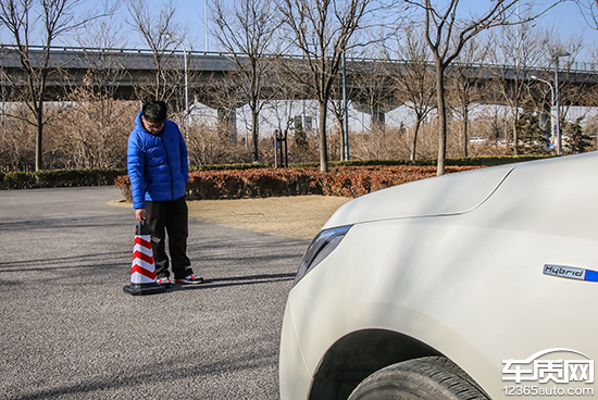 在測(cè)試前方視野階段,我們采用高70cm的樁桶作為參照物,隨后調(diào)整車(chē)距,直至在主駕席可以看到樁桶上沿。